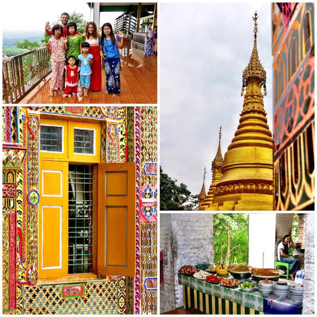 The day ended at the U-Bein bridge, a wooden bridge crossing a lake at the southern point of Mandalay surrounded by marshland, where we were brought specifically for the infamous… sunset! Sunrise and sunset has been the number one tourist attraction sold everywhere we have been; “a must do!” And what can we say…, yes, it is sometimes wonderful and other times not that much. Speaking of Mandalay, we can say that for the first time in this trip the sunset was truly spectacular. The color that it emitted had a golden glow to it, dying everything in its path the same color. We also enjoyed observing the fishermen becoming dark silhouettes in a golden lake, as well as the monks, local couples and children taking an afternoon stroll.